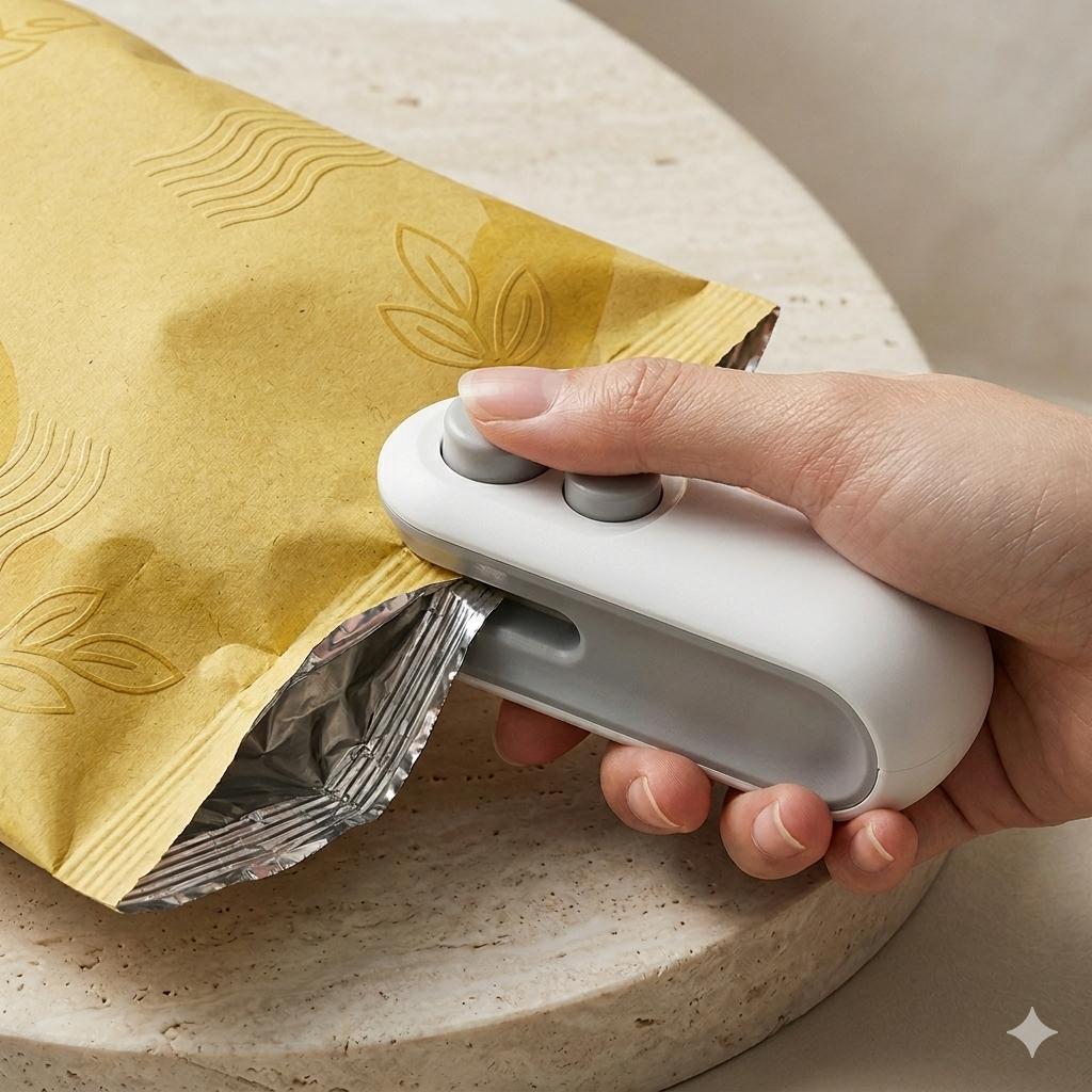 Małe i doskonałe urządzenie. Zamyka wszelkiego rodzaju torby i eliminuje potrzebę szukania rozwiązań do zamykania.